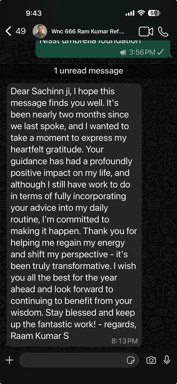 I have been following Sachinn sir’s page on Instagram for a while. Eventually, i decided to get both life reading and business consultation. First of all, everything he told me by reading my dates was super accurate. I was going through the same journey at that point. Secondly, his remedies have slowly started changing my life for good. Sachinn sir is sharp, articulate and to the point. He doesn’t waste time running around the bush but gets straight to your problems and start talking about how to solve them. That’s what I love about him. It’s not only him, a gentleman named Rajiv Khanna from his team is always on toes for you. And what a man! Once you speak to him, you’ll keep wanting to talk to him. He becomes your go-to person. a friend, a mentor for life.